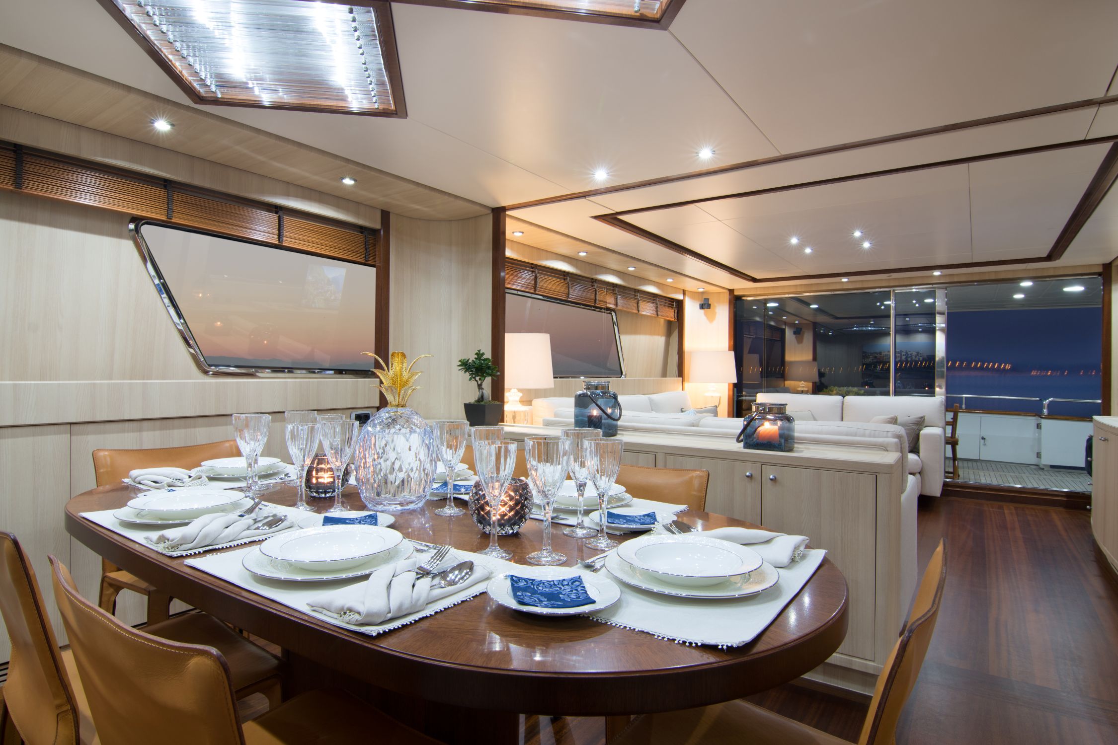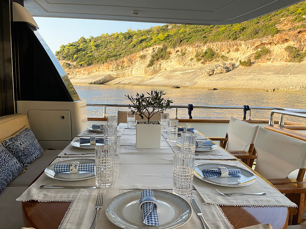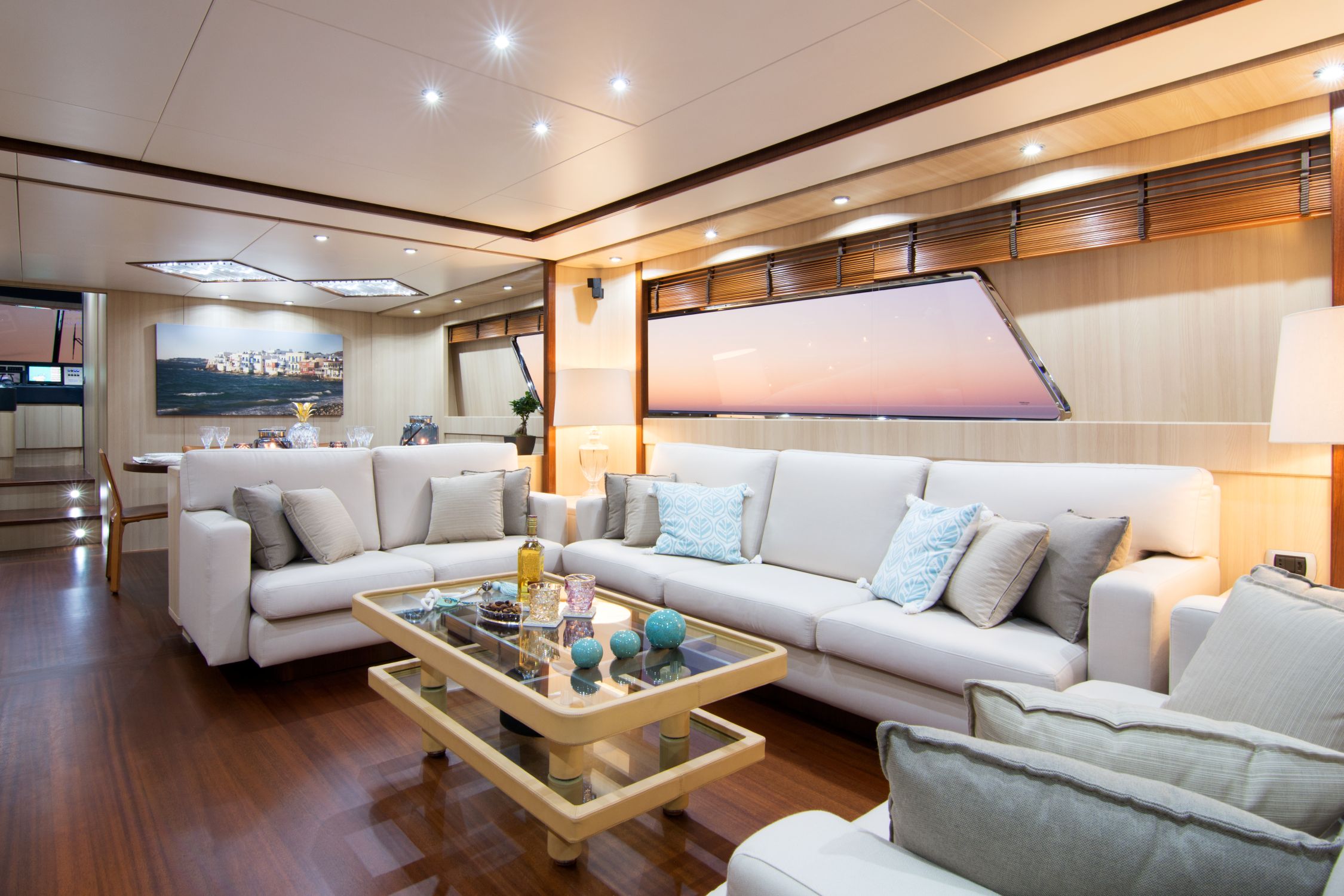 Classic Sanlorenzo ACIONNA, a popular charter yacht with timeless styling and excellent al fresco areas, accommodates nine guests in four spacious suites. Launched in 2004 with a 2019 refit, she offers a relaxing interior in neutral colors and exterior spaces much larger than generally found on a yacht in her size range. Her open-top flybridge is a versatile space for seating and dining. A family-friendly vessel, she offers a selection of toys including a jet-ski, two Seabobs, a wakeboard and water skis, two floating platforms, and a paddle board.