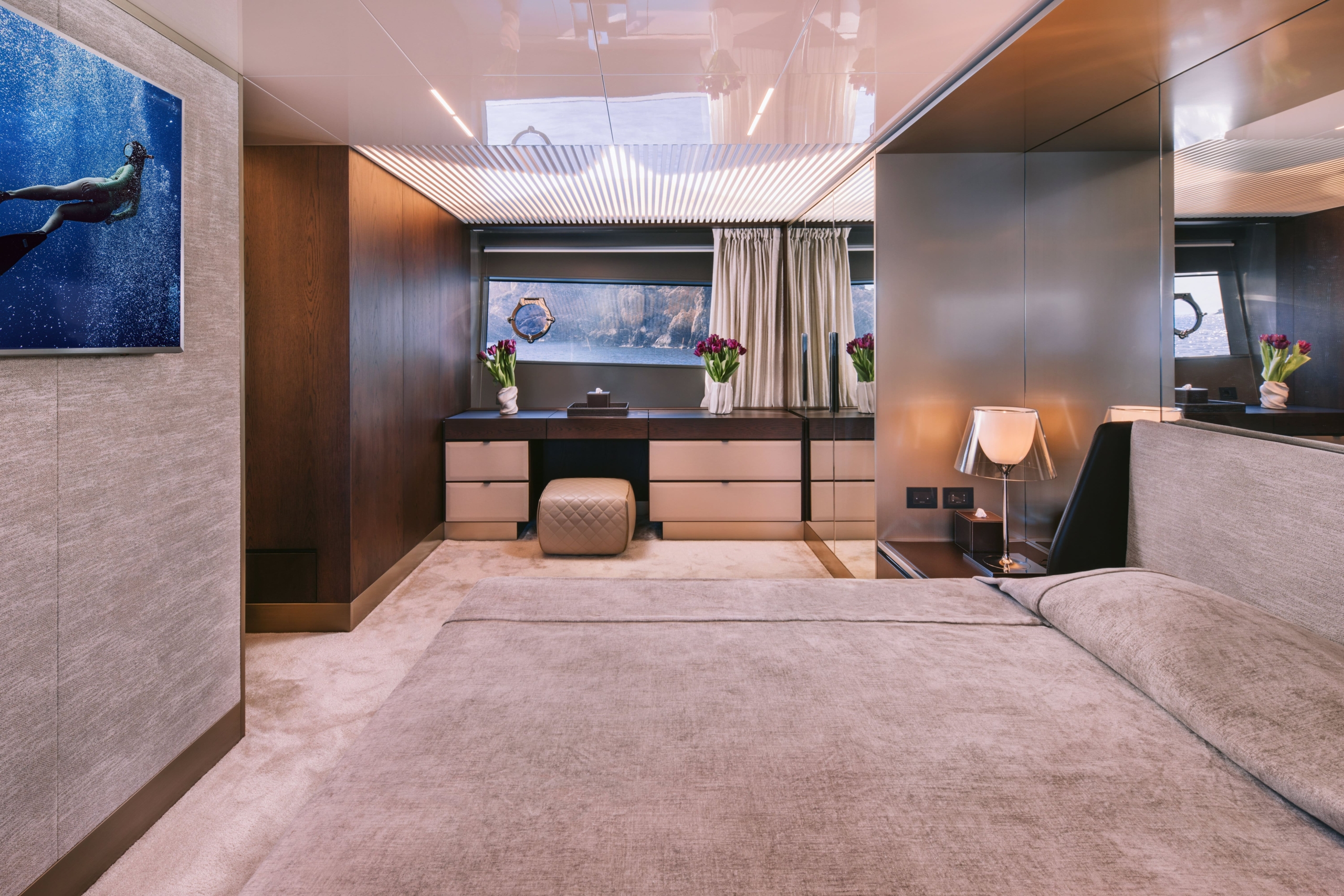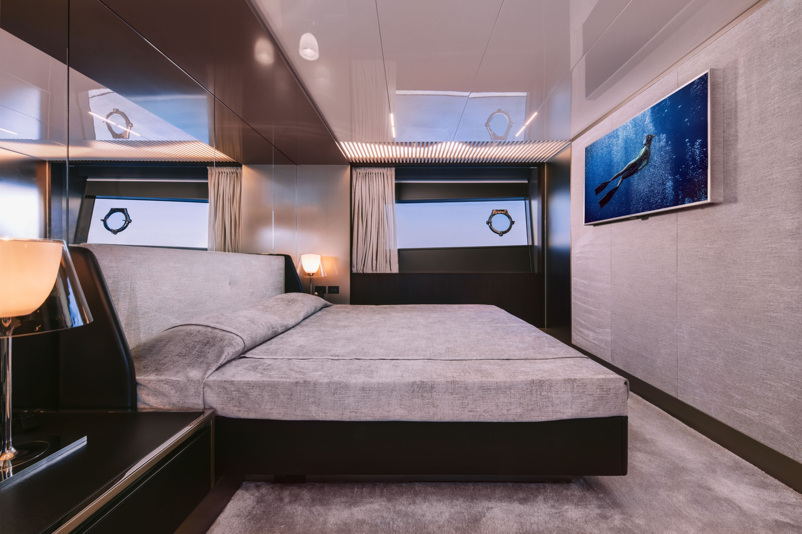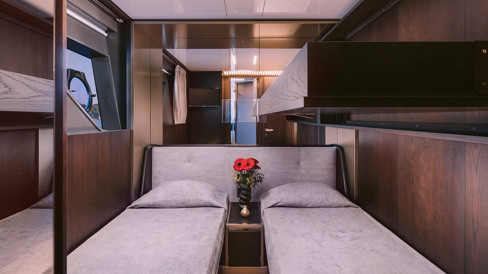 CONFIGURATION: 1 Master cabin with en suite facilities (bed dimensions: 1 VIP cabin with en suite facilities. 1 port double cabin with en suite facilities. 1 starboard twin cabin with pullman bed and en suite facilities