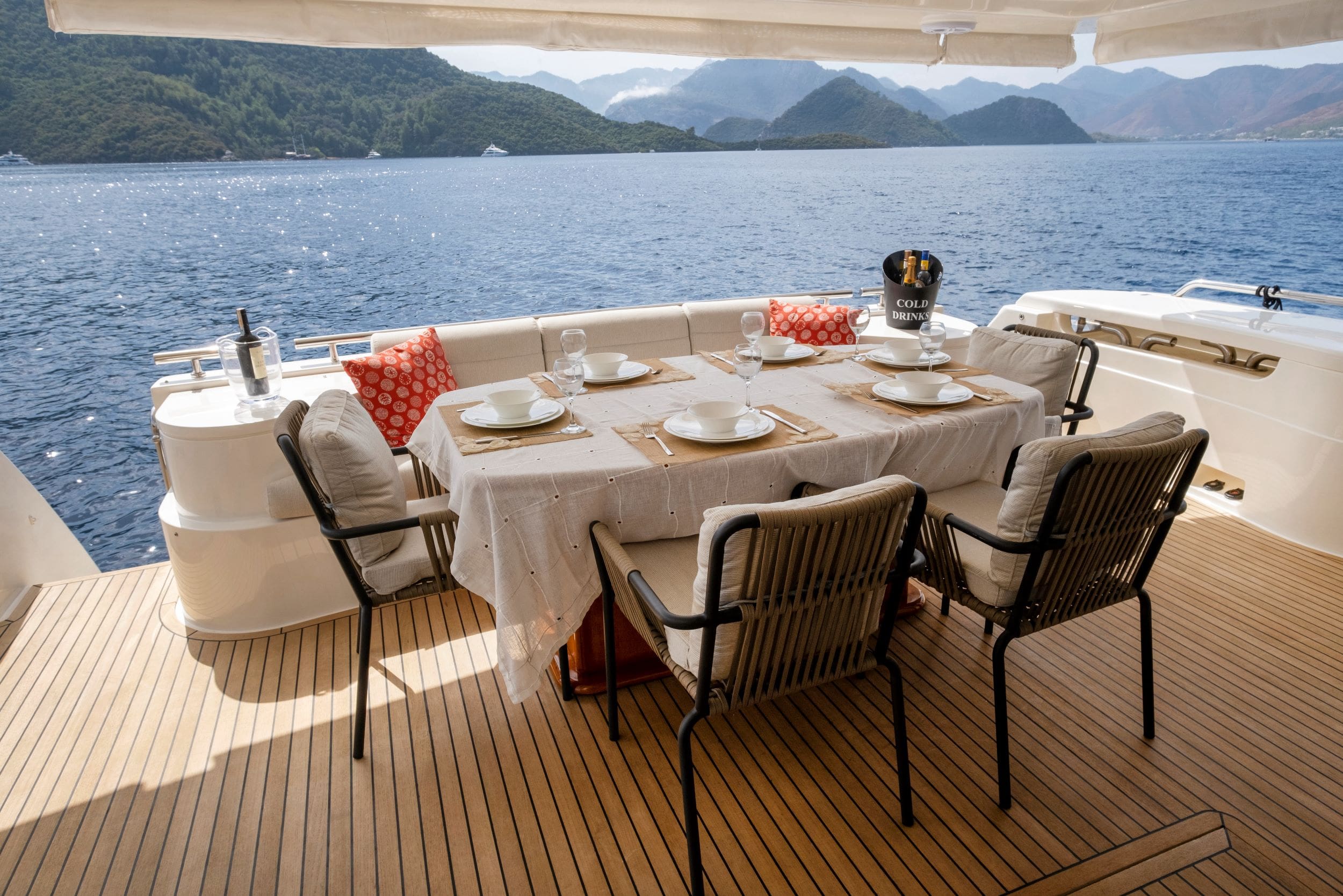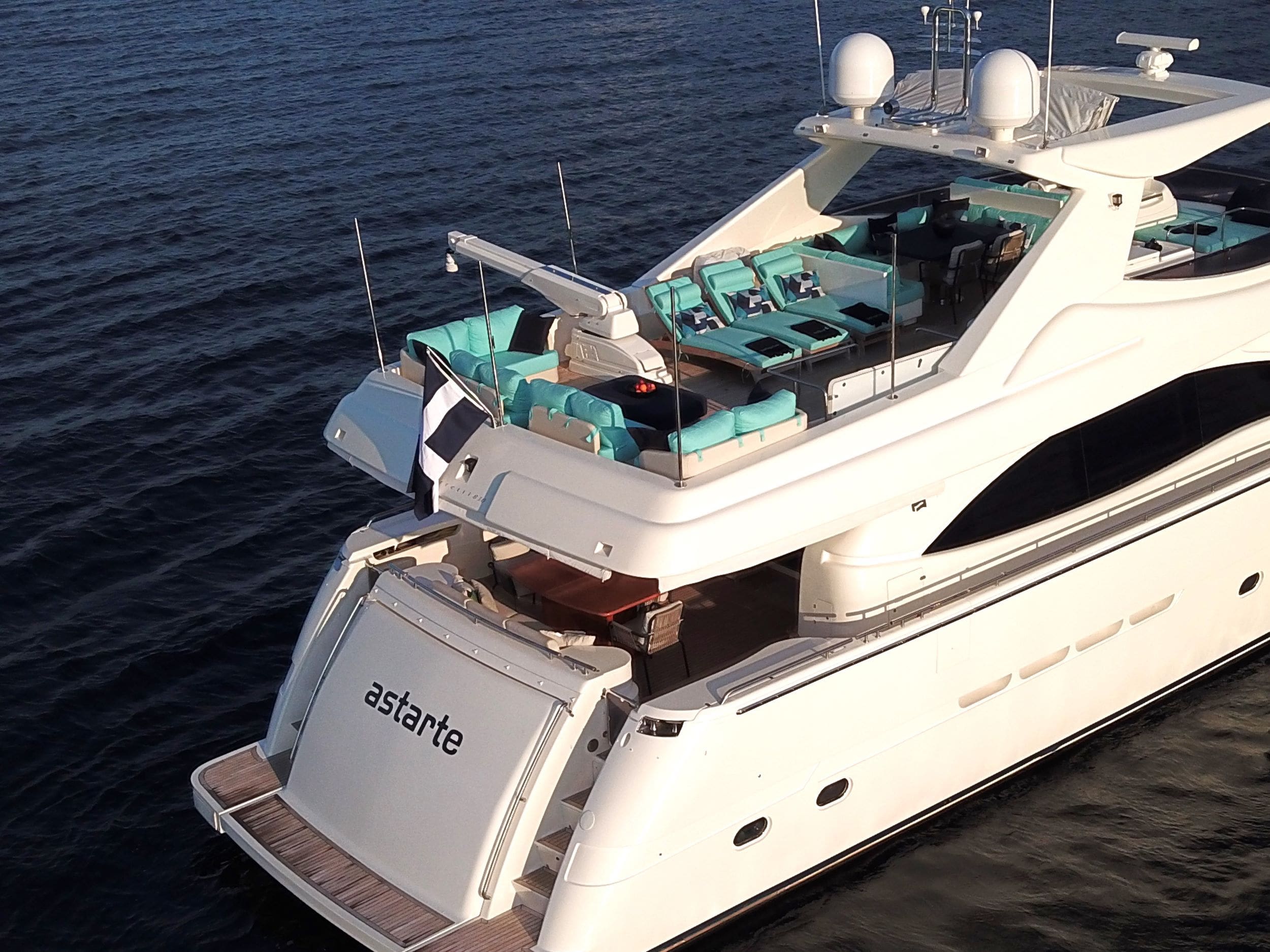 ASTARTE is a 25.30m (83′) crewed motor yacht from the renowned Italian shipyard Ferretti, launched in 2007 and beautifully refitted in 2019. Offering luxurious accommodation for up to nine guests, ASTARTE features an expansive Owner’s suite with a full-beam layout and large windows for an immersive living-afloat experience. Additionally, there is a spacious VIP stateroom and two Twin staterooms, one with a Pullman bed, each with en suite facilities. The Aft Deck is perfect for al fresco dining, complemented by a large swim platform for easy sea access and sun-soaked fun. The flybridge offers sun loungers, ample seating, a dining table, and shaded areas. Guests can also enjoy sunbathing on the foredeck’s sunbed cushions while cruising and an impressive 21 knots. A dedicated crew of four ensures a wonderful and relaxing Greek charter vacation.