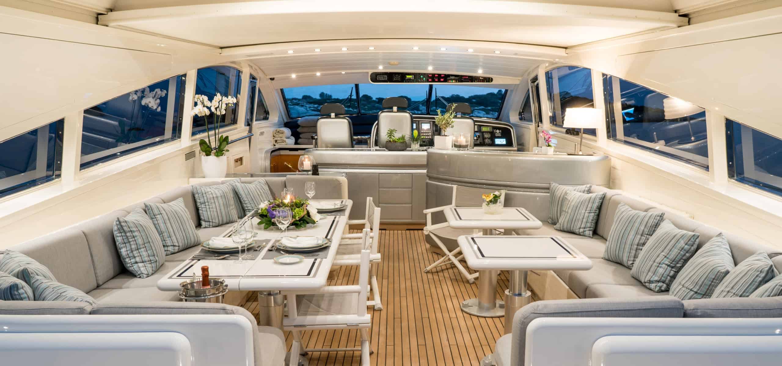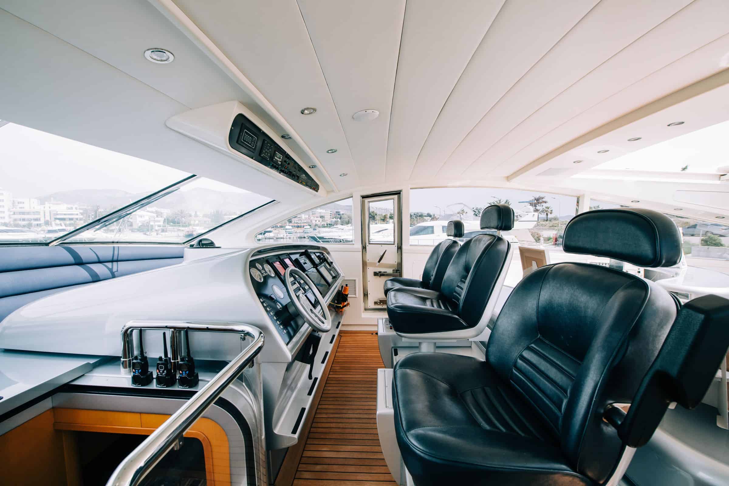 ATRATO is a magnificent 27m Leopard yacht. She is a performance cruiser with a marvelous open cockpit, providing an extremely comfortable interior and exterior layout. Her well-appointed cabins have a tasteful decor with warm colors, leather on sofas and natural light throughout the yacht. She has 4 cabins; A King a Queen, 2 Twins with 2 Pullman berths. All cabins offer entertainment equipment controlled by Ipads. Her underwater lights create an ambiance of marvel at night. She also features zero-speed Stabilizers onboard, a wine cooler, wireless Airplay sound system, and a spacious sundeck, making it the perfect yacht for Mediterranean summers!