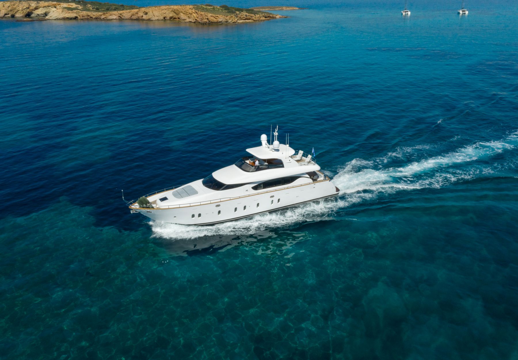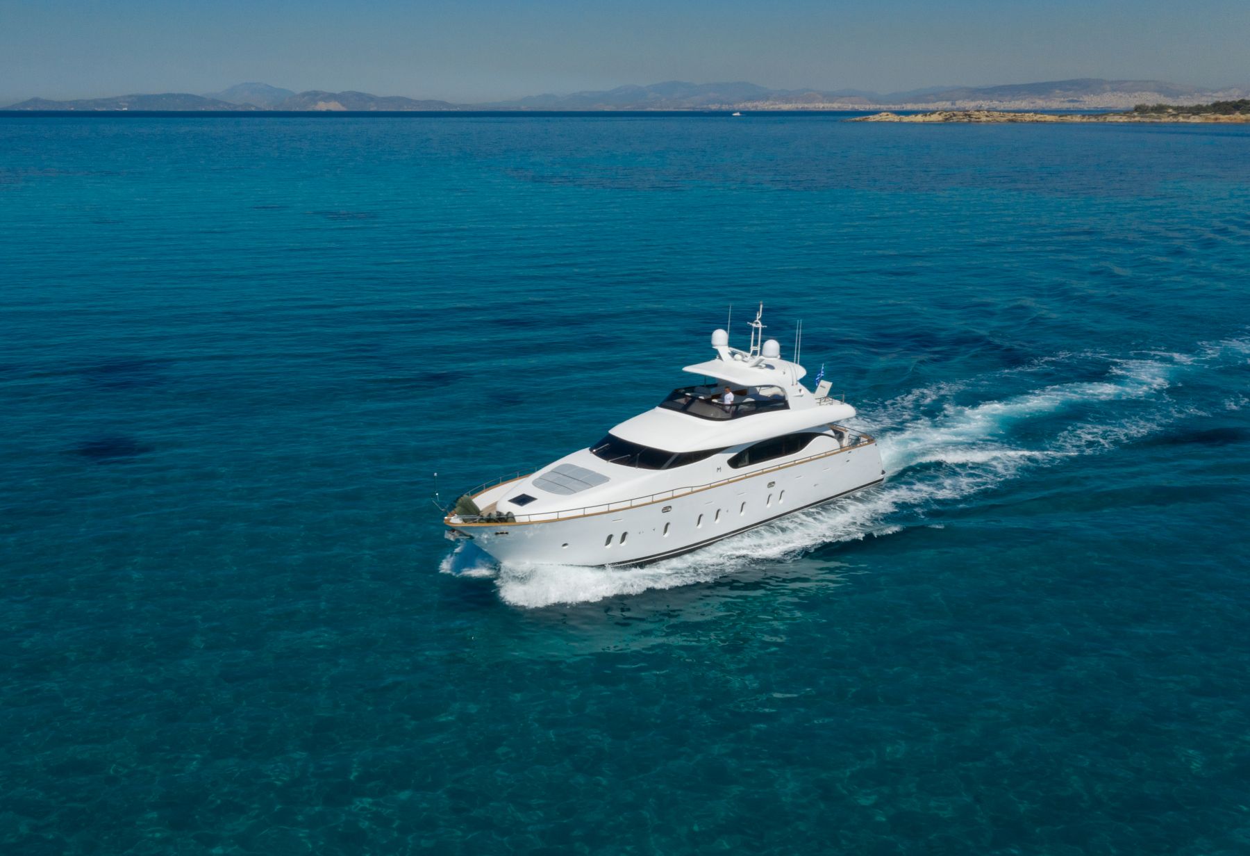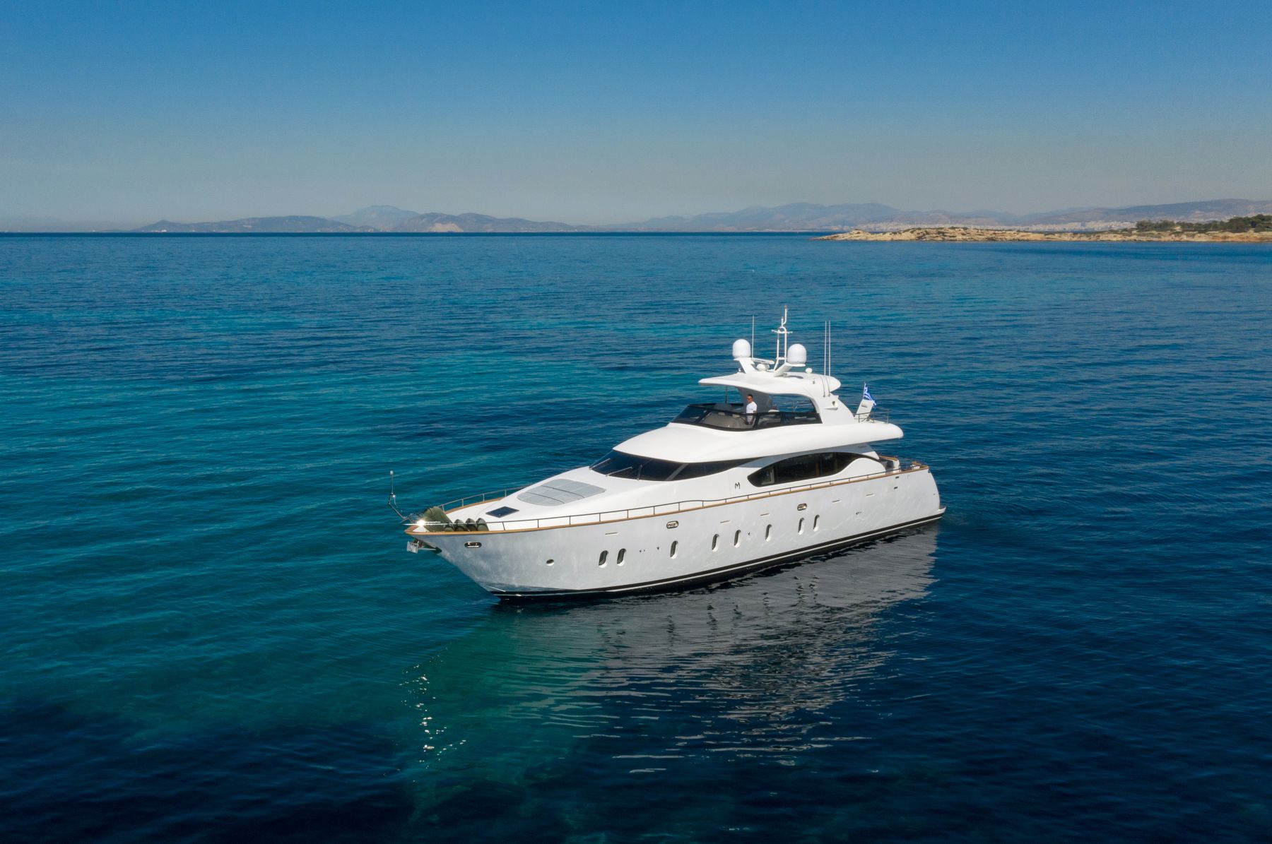 EL PECADO is a 23.60-metre (77’5”) luxury flybridge motor yacht built by renowned Italian shipyard Maiora in 2014, with her first sale completed in 2018. Designed inside and out by Roberto Del Re, she blends elegant craftsmanship with intelligent naval architecture, featuring a high-performance planing GRP hull and a stylish flybridge superstructure. Fresh from a 2024 refit, EL PECADO offers a modernized interior by Roberto Del Re, RINA classification and RINA-RINA standards, and is proudly flagged and commercially registered in Greece, with her home port in Piraeus. Powered by twin MAN V12 engines delivering 2,720 HP combined, and supported by two 22.5kW ONAN generators, she cruises effortlessly at 20 knots and reaches an impressive 26 knots at full speed. EL PECADO accommodates up to 9 guests overnight across 4 en-suite cabins—including a full-beam Master with…