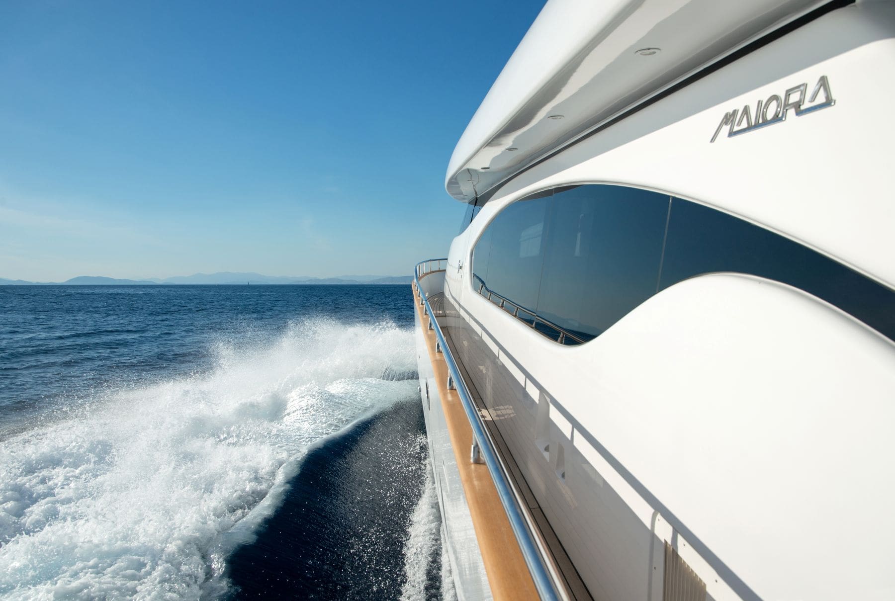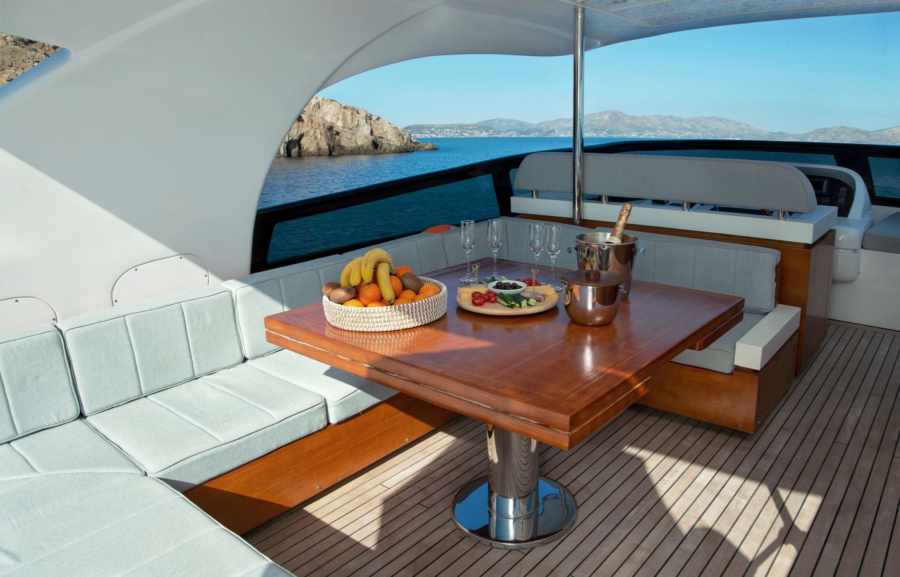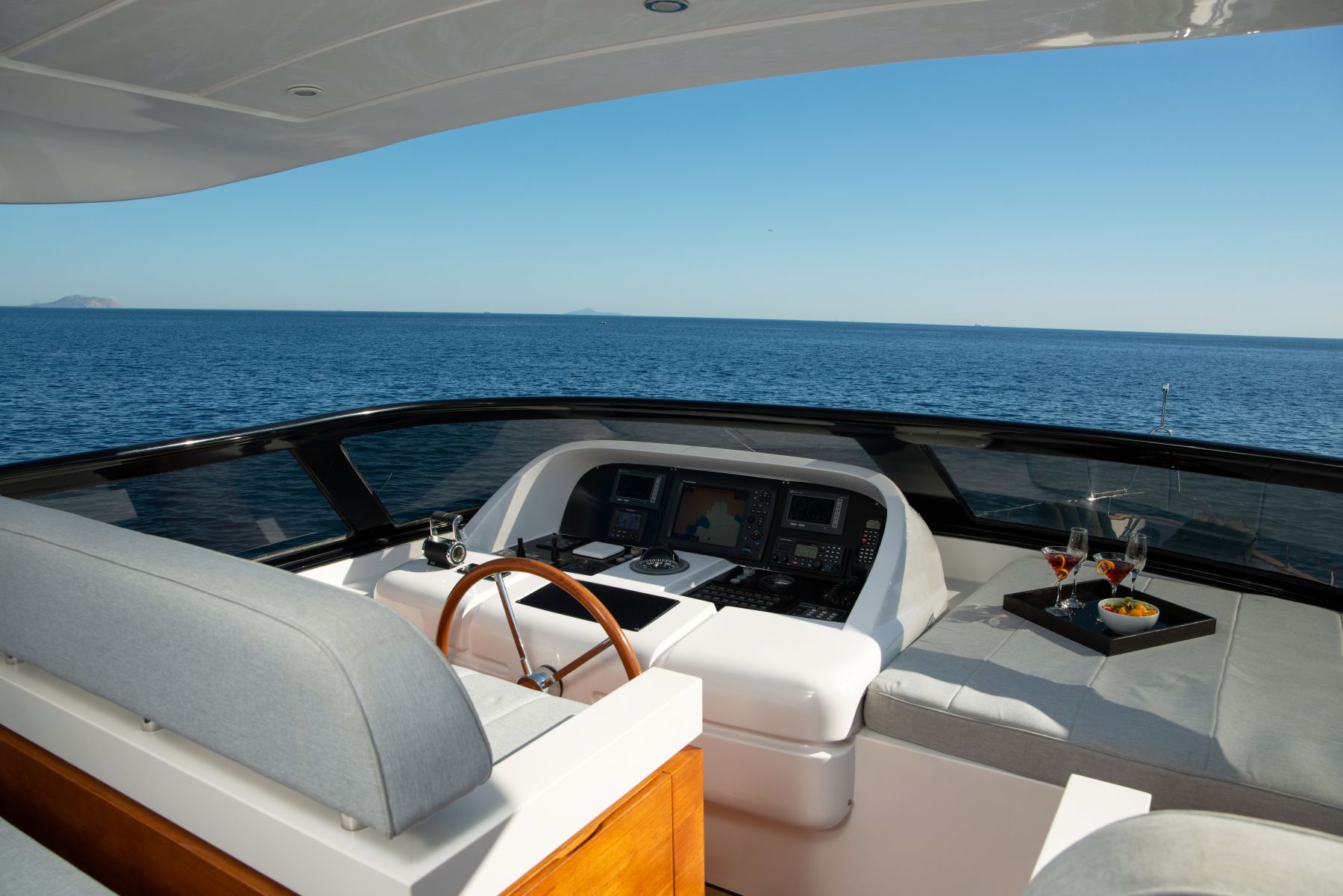 EL PECADO is a 23.60-metre (77’5”) luxury flybridge motor yacht built by renowned Italian shipyard Maiora in 2014, with her first sale completed in 2018. Designed inside and out by Roberto Del Re, she blends elegant craftsmanship with intelligent naval architecture, featuring a high-performance planing GRP hull and a stylish flybridge superstructure. Fresh from a 2024 refit, EL PECADO offers a modernized interior by Roberto Del Re, RINA classification and RINA-RINA standards, and is proudly flagged and commercially registered in Greece, with her home port in Piraeus. Powered by twin MAN V12 engines delivering 2,720 HP combined, and supported by two 22.5kW ONAN generators, she cruises effortlessly at 20 knots and reaches an impressive 26 knots at full speed. EL PECADO accommodates up to 9 guests overnight across 4 en-suite cabins—including a full-beam Master with…