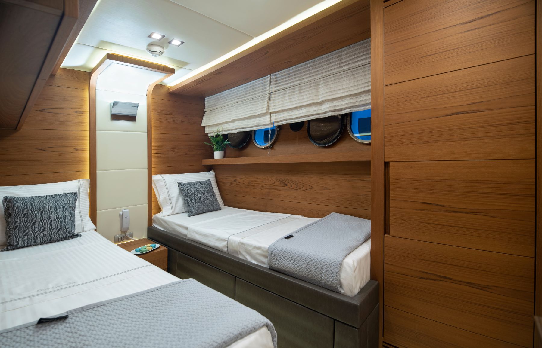CONFIGURATION: 1 Master with King bed, 1 VIP with Queen bed, 2 Twins (one with pullman berth)