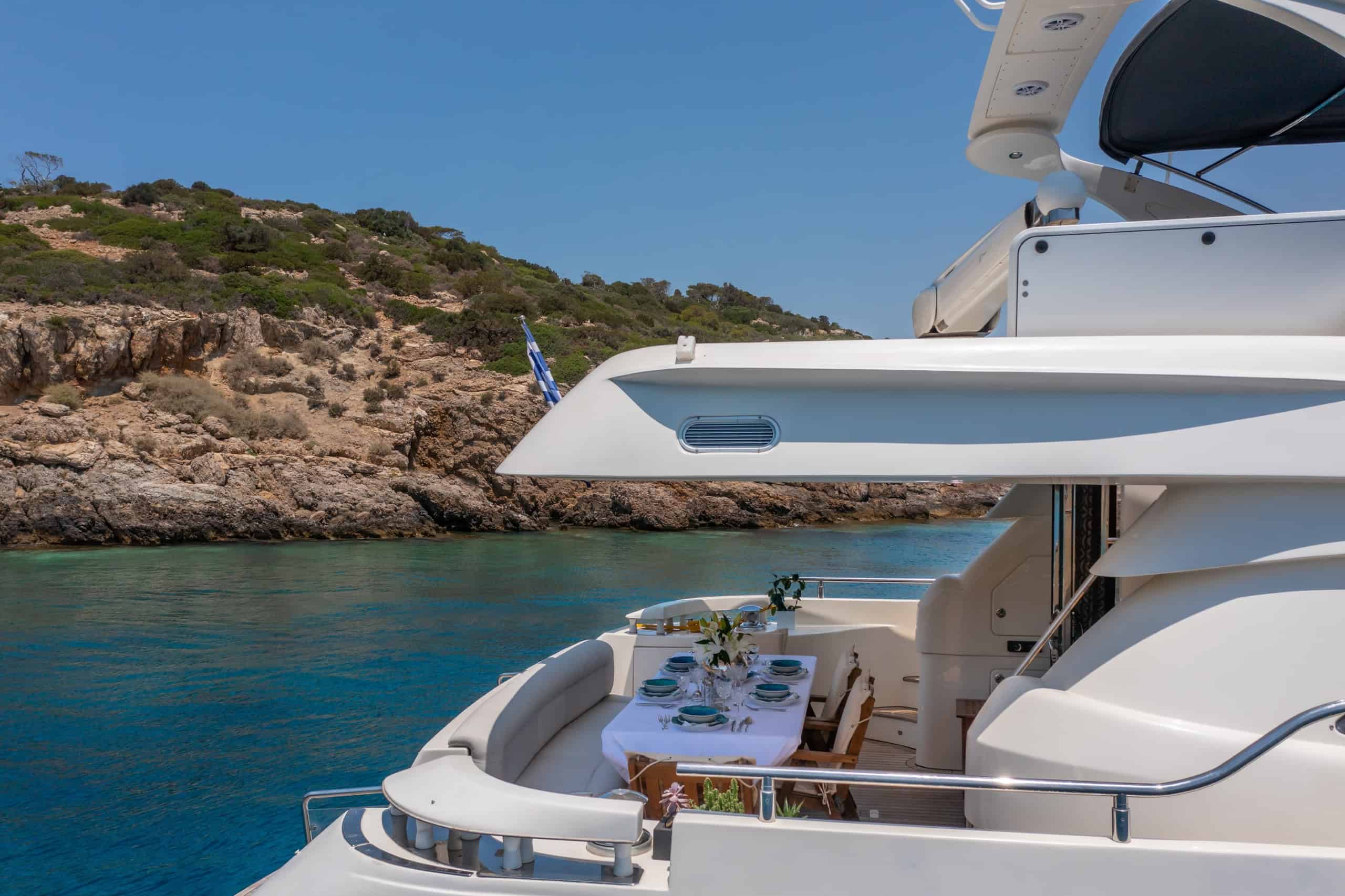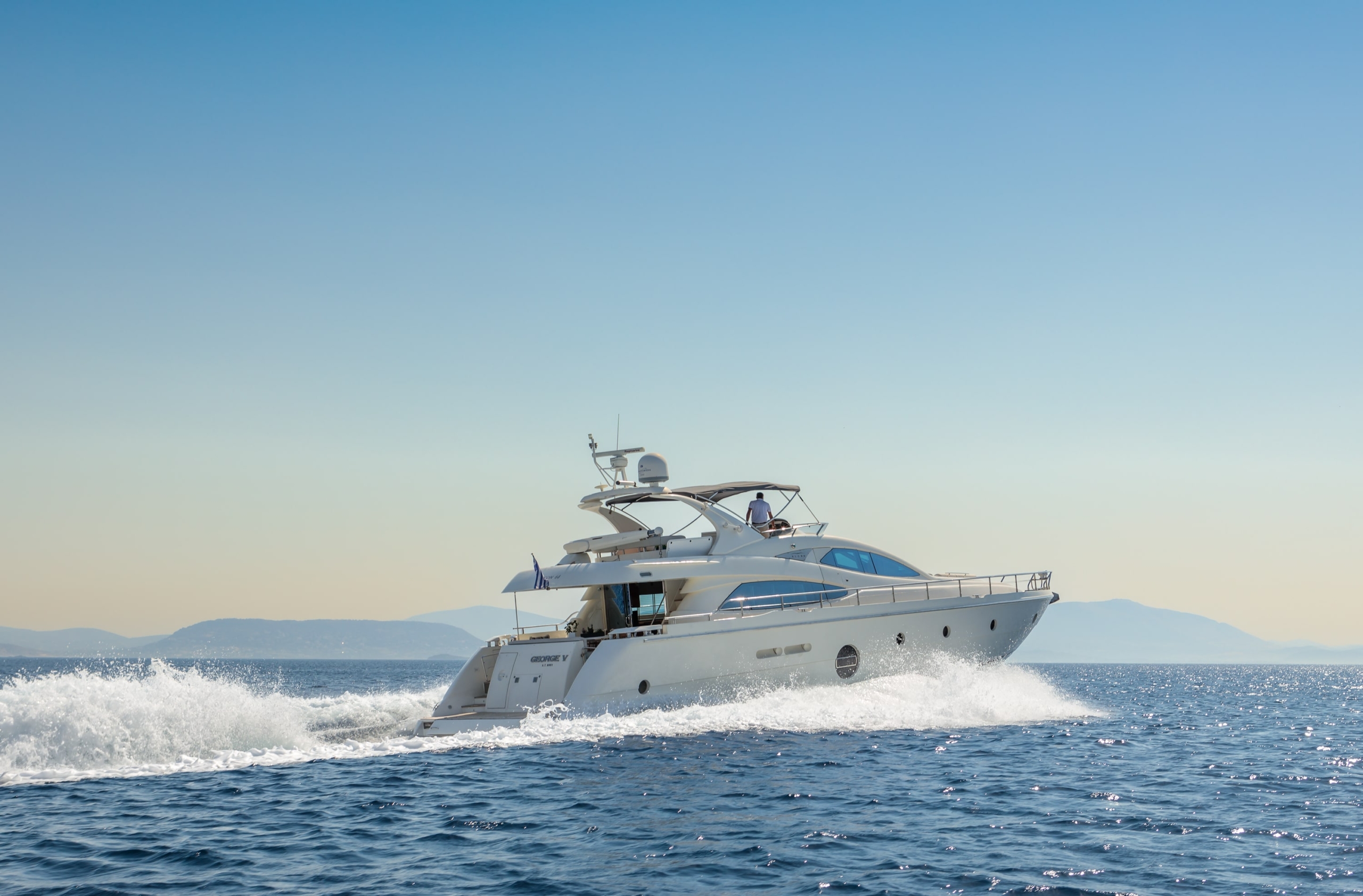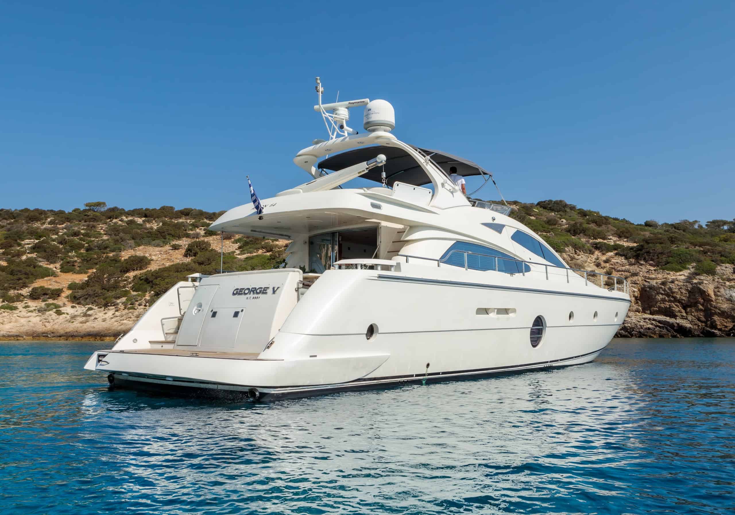 George V is an Aicon motor yacht accommodating 8 guests in 4 cabins as follows: One Master Cabin with ensuite facilities, One VIP Cabin with ensuite facilities, One Twin cabin & One bunk bed cabin sharing facilities. The spacious sun-deck has a C shaped sofa, lined with beautiful fabric that serves as seating around the table. A fridge and BBQ complete with lovely sunbathing area makes this area perfect for enjoyment..A crew of 3 serve guests and offer great holidays aboard!