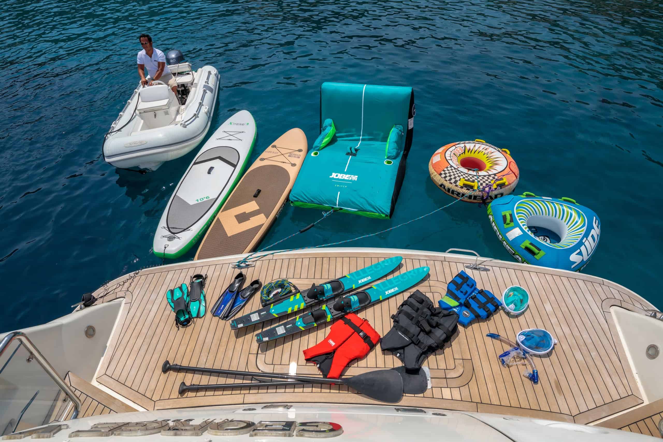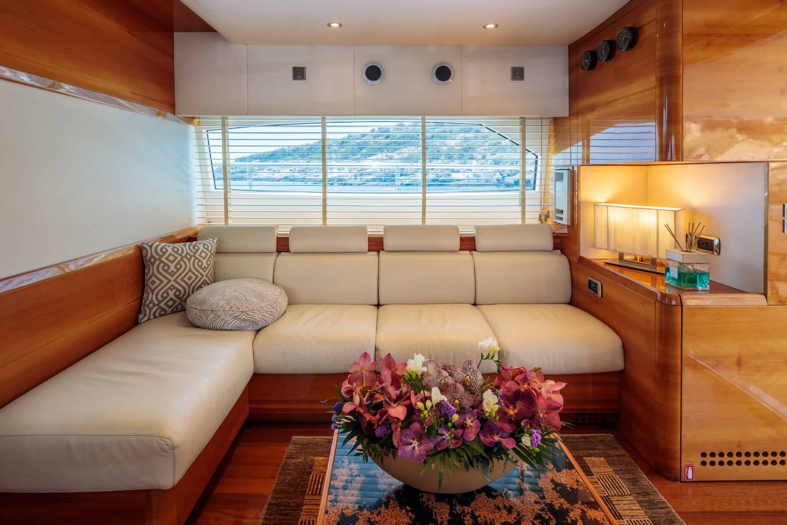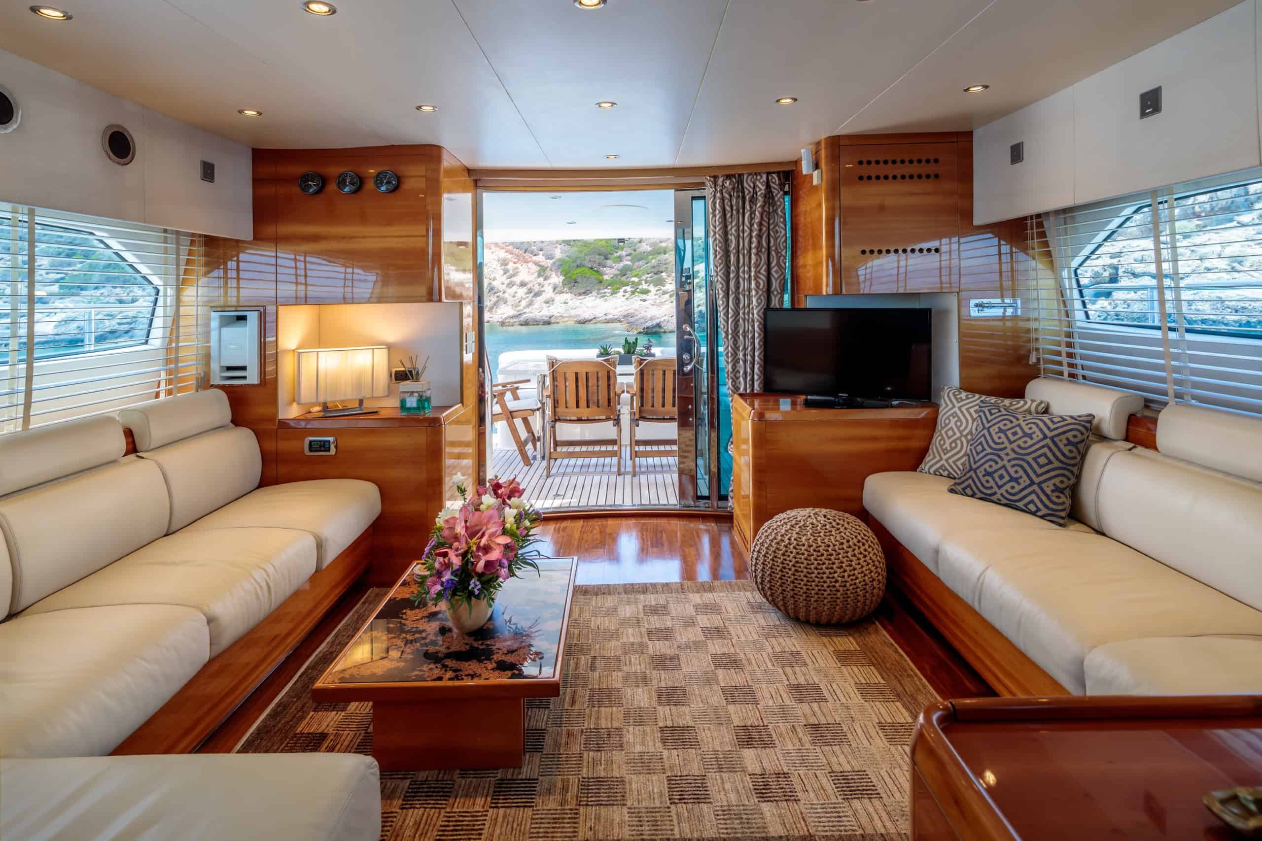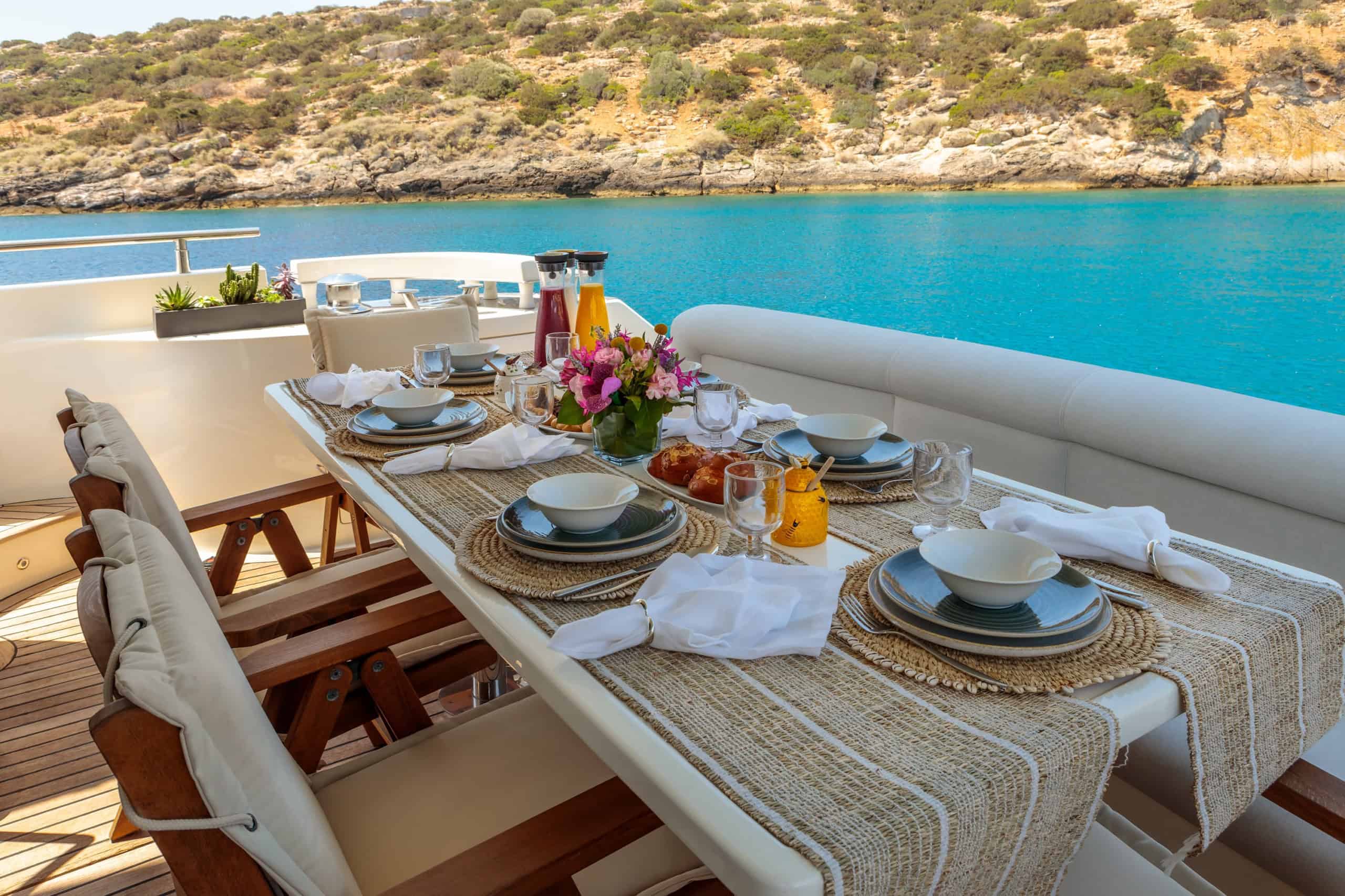 George V is an Aicon motor yacht accommodating 8 guests in 4 cabins as follows: One Master Cabin with ensuite facilities, One VIP Cabin with ensuite facilities, One Twin cabin & One bunk bed cabin sharing facilities. The spacious sun-deck has a C shaped sofa, lined with beautiful fabric that serves as seating around the table. A fridge and BBQ complete with lovely sunbathing area makes this area perfect for enjoyment..A crew of 3 serve guests and offer great holidays aboard!