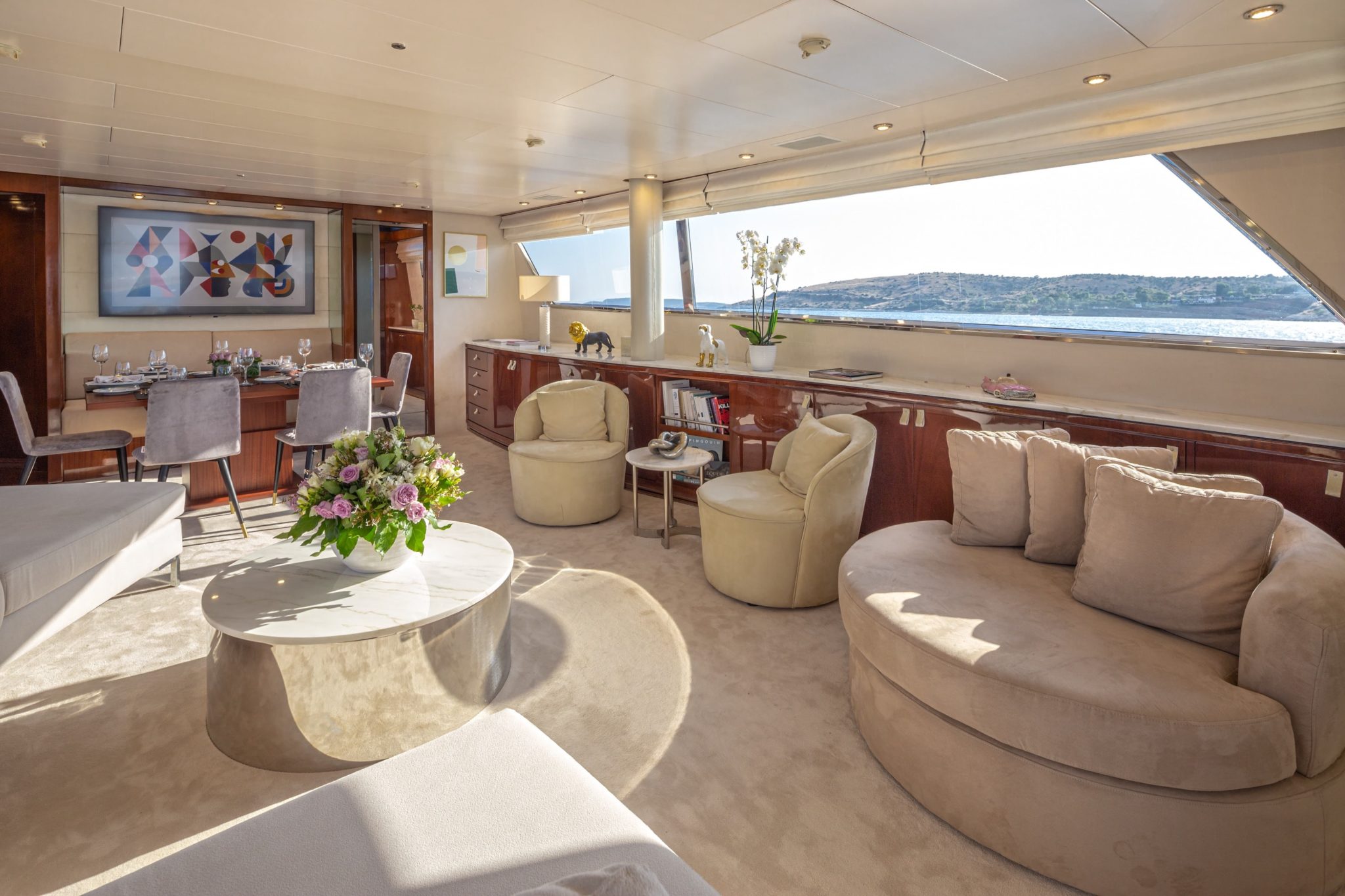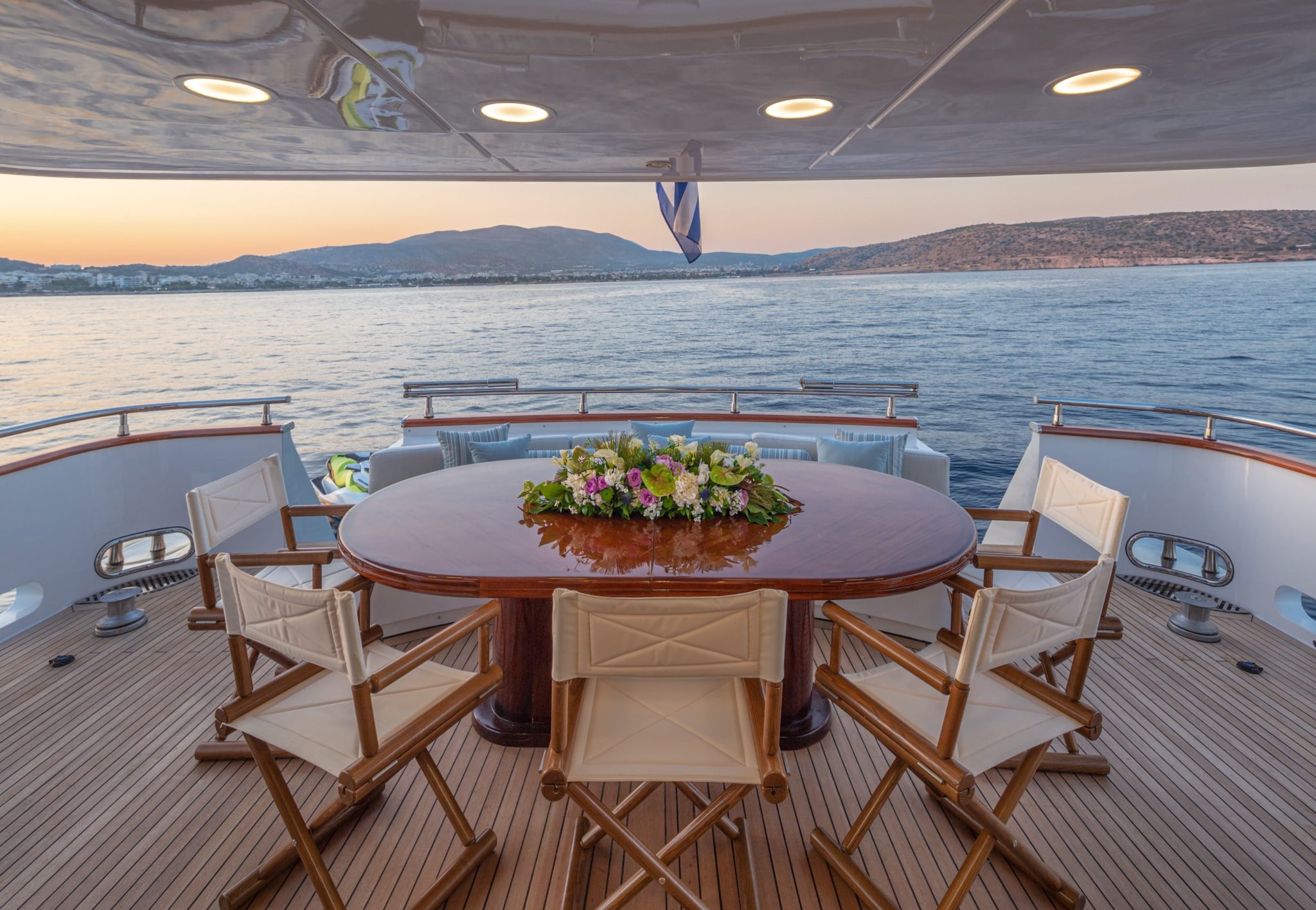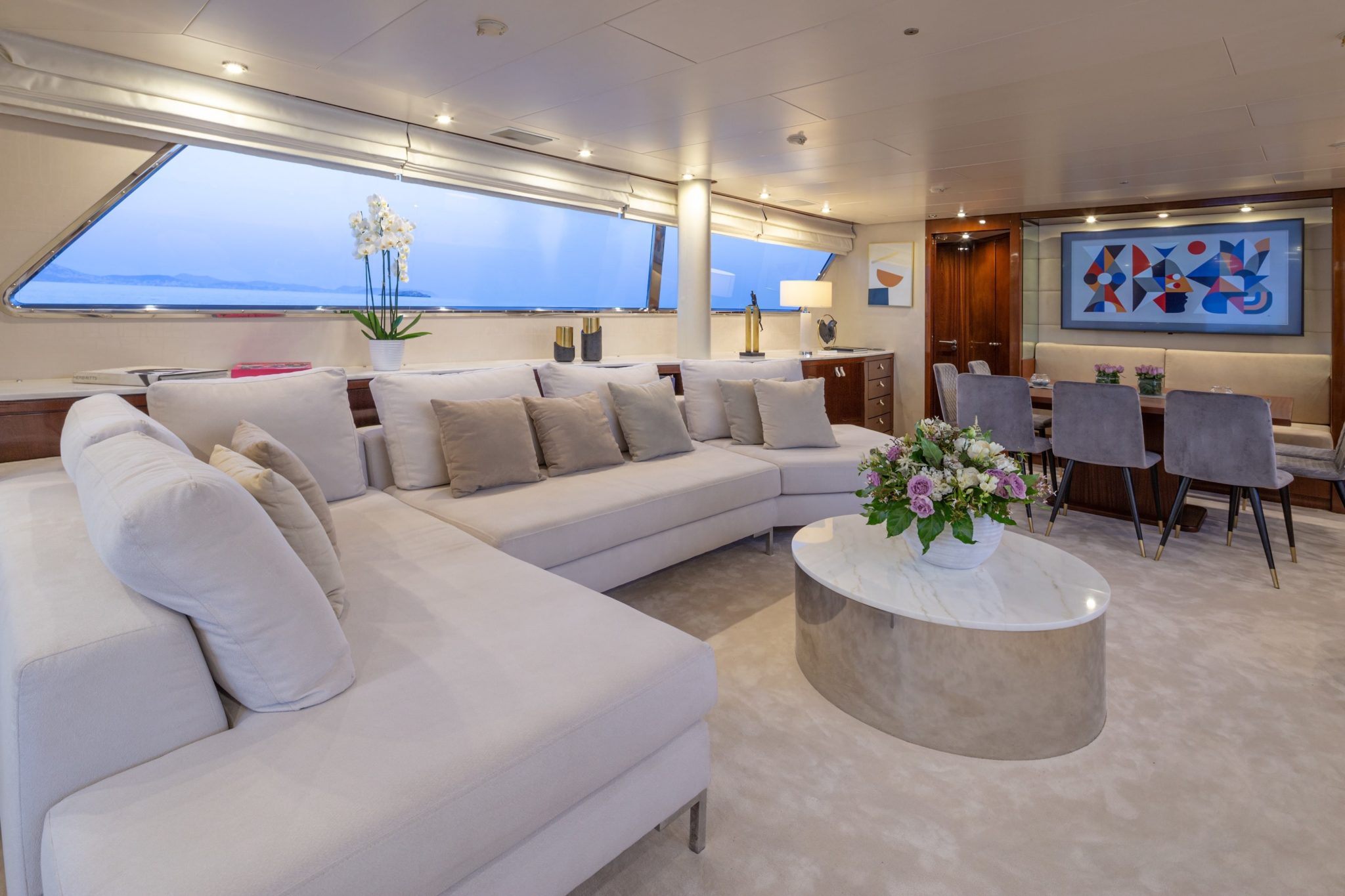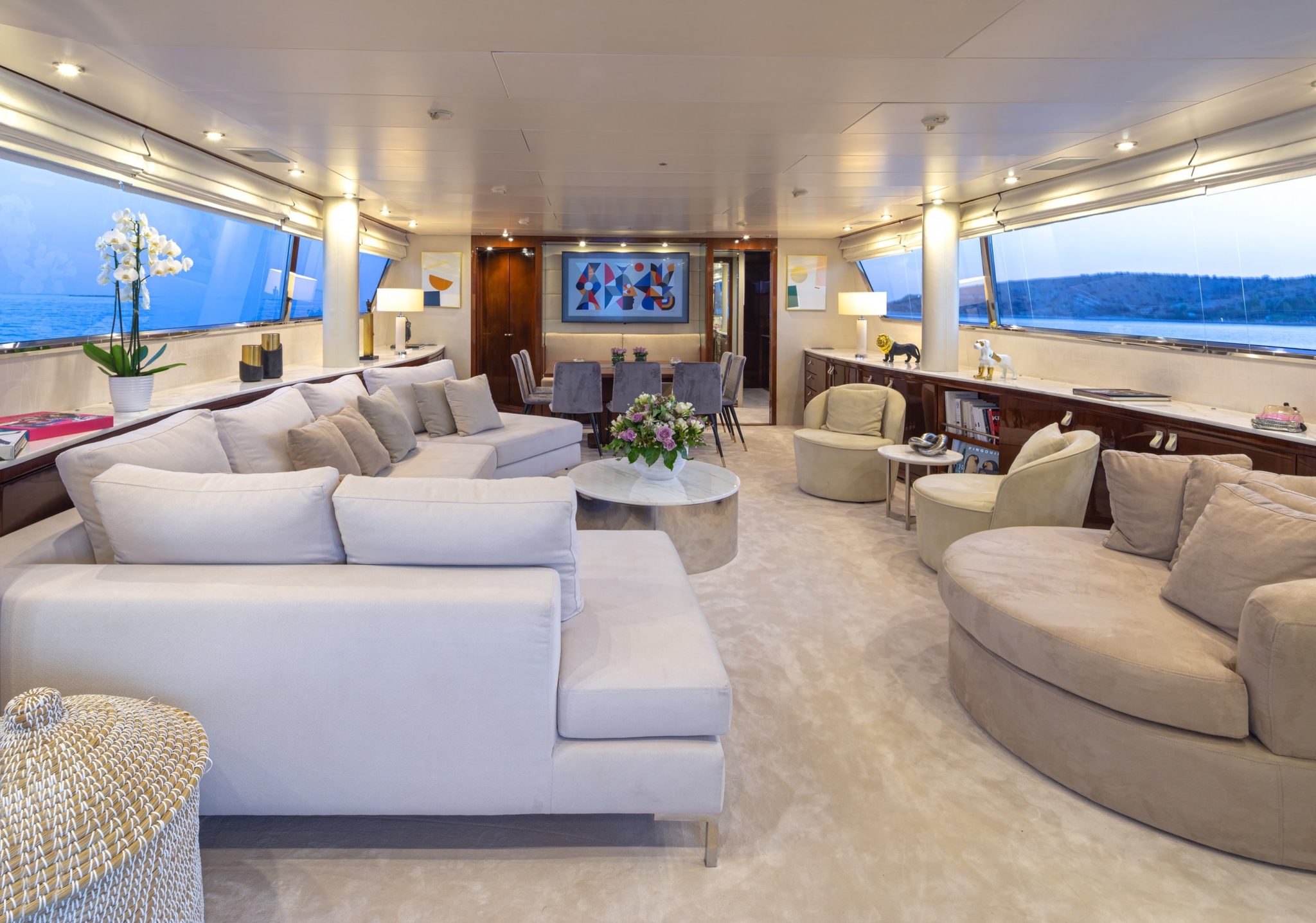 Simple elegance and comfort is abound on this beautiful San Lorenzo motor yacht GRACE (EX Polar Star). With neutral colors and clean lines throughout the yacht, guests will feel at ease at once. With four staterooms, each with en suite facilities, she comfortably accommodates eight guests. There is an Owner’s cabin with a Jacuzzi tub and shower en suite, a VIP cabin and two twin cabins. The salon is spacious and ideal for relaxing or entertaining before dining in the formal dining area while the lovely aft deck seating area the perfect place to dine al fresco, with gorgeous views all around. This fast yacht cruises at speeds up to 30 knots!