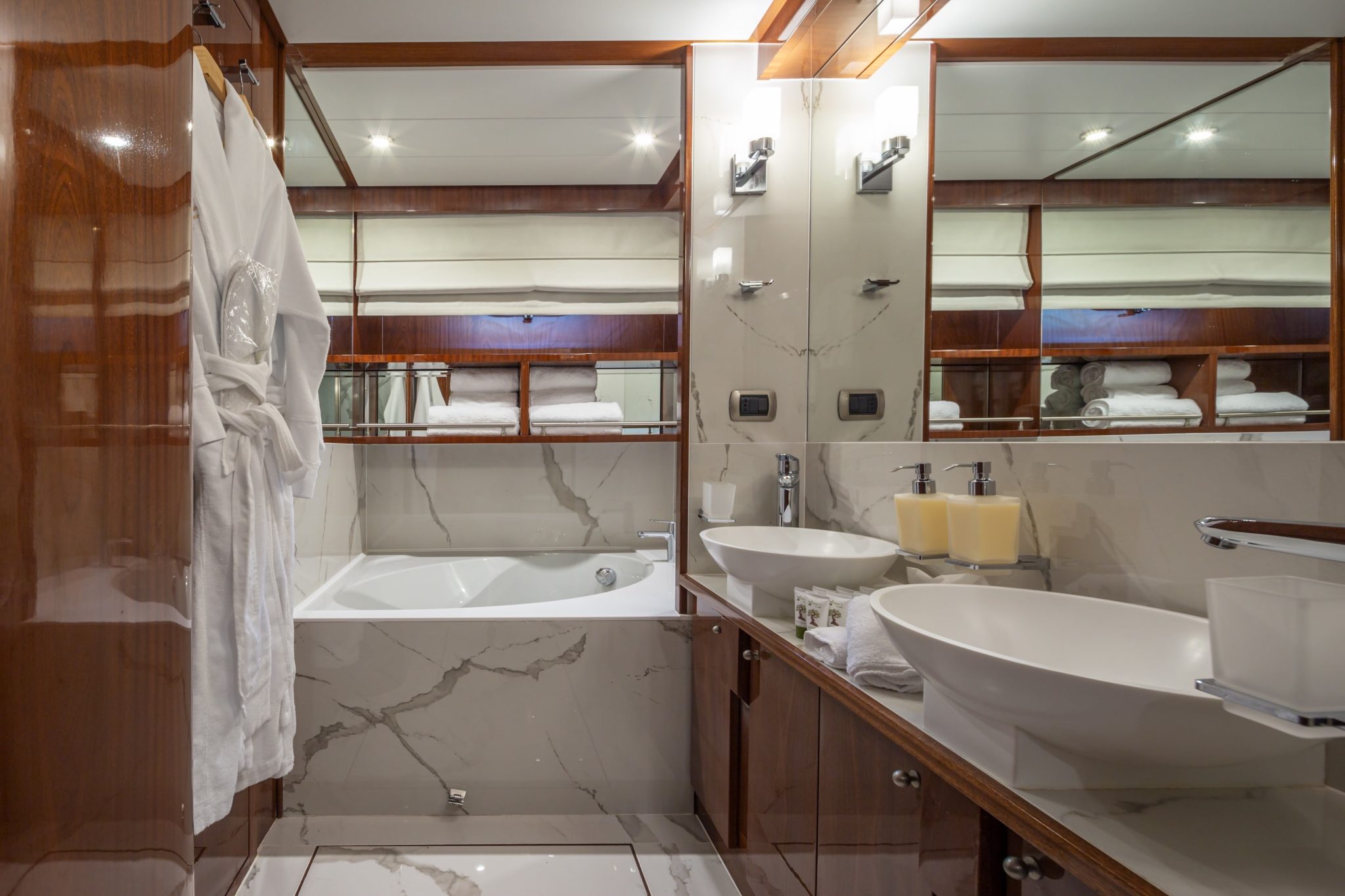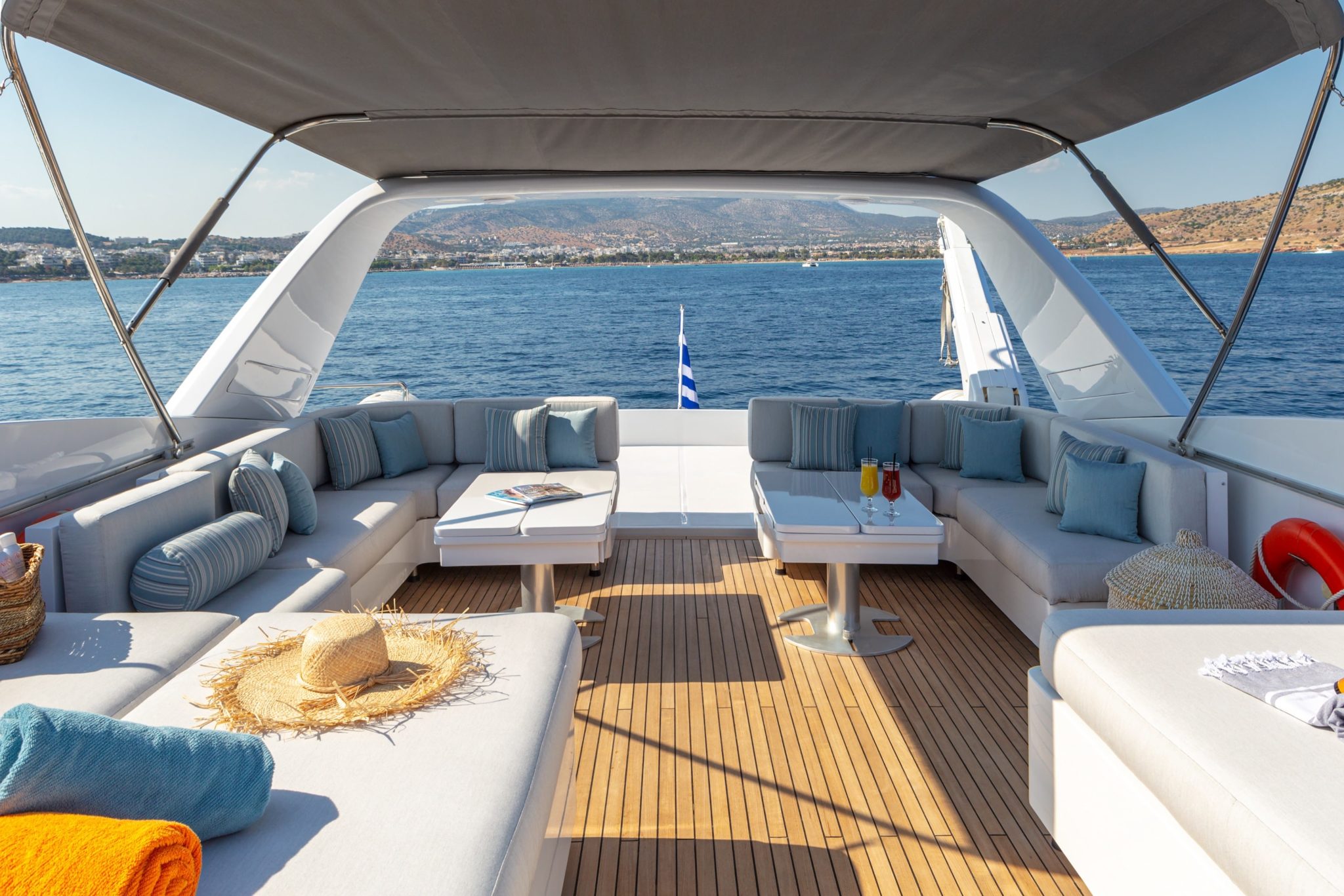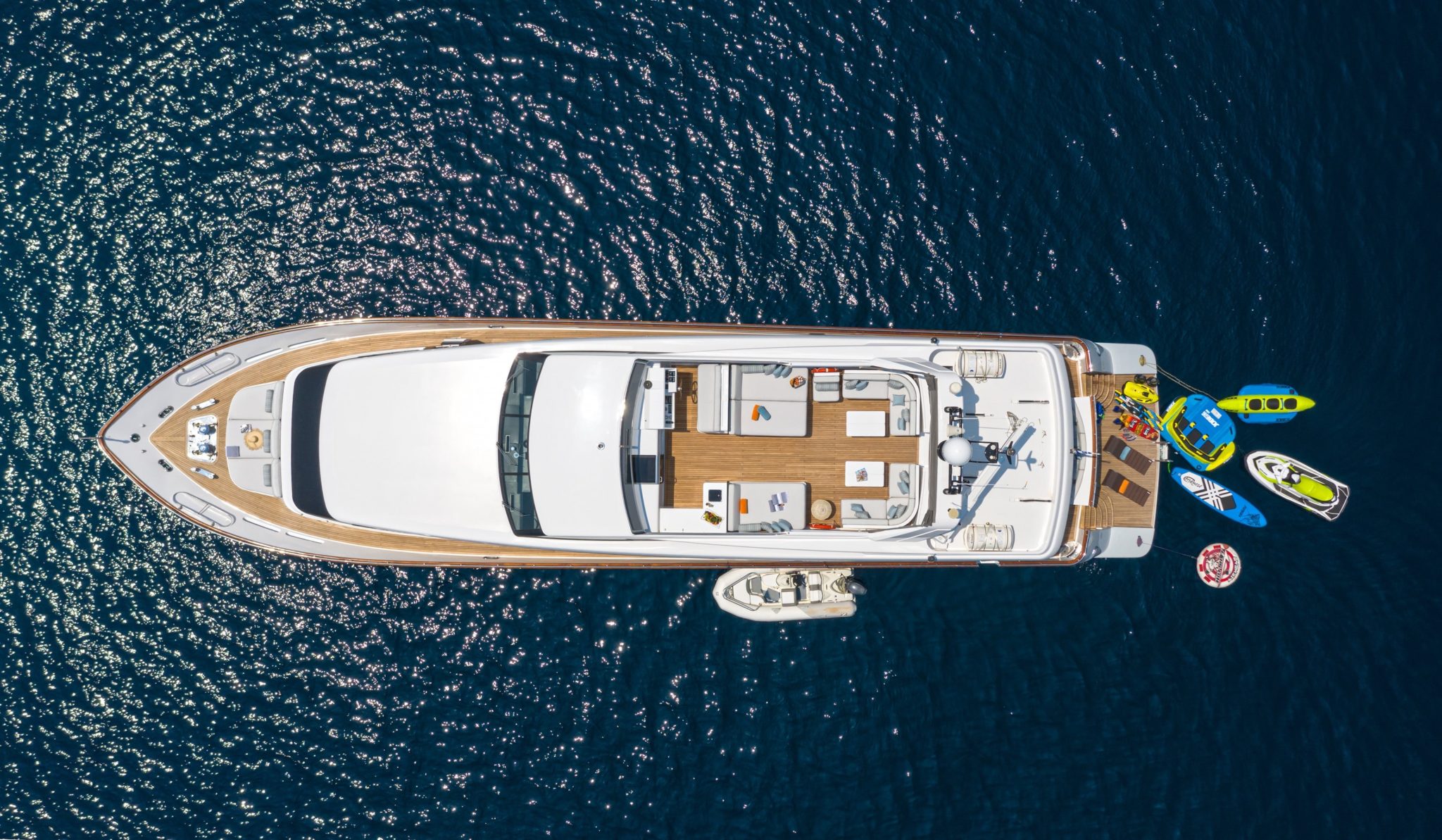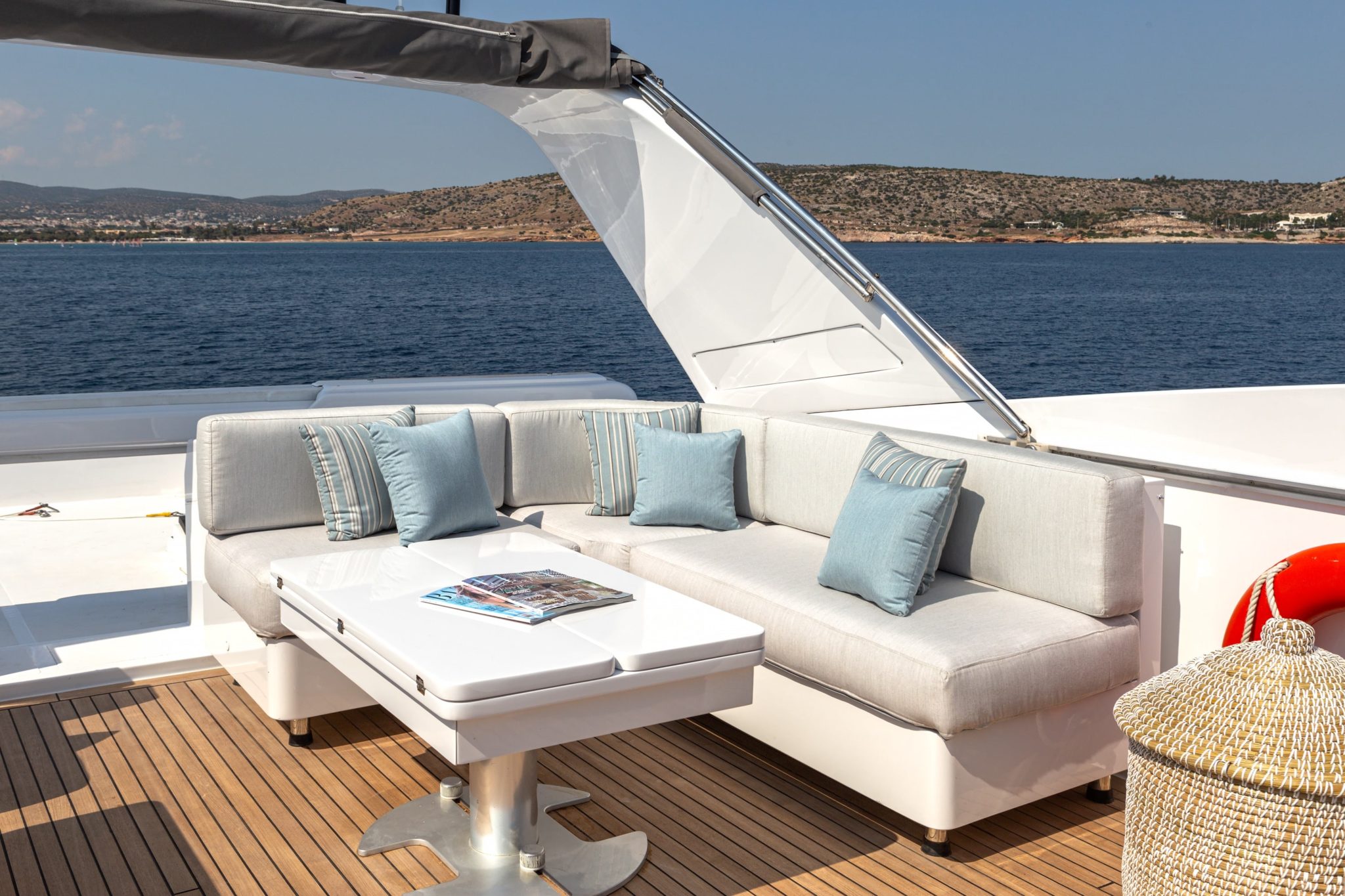 Simple elegance and comfort is abound on this beautiful San Lorenzo motor yacht GRACE (EX Polar Star). With neutral colors and clean lines throughout the yacht, guests will feel at ease at once. With four staterooms, each with en suite facilities, she comfortably accommodates eight guests. There is an Owner’s cabin with a Jacuzzi tub and shower en suite, a VIP cabin and two twin cabins. The salon is spacious and ideal for relaxing or entertaining before dining in the formal dining area while the lovely aft deck seating area the perfect place to dine al fresco, with gorgeous views all around. This fast yacht cruises at speeds up to 30 knots!