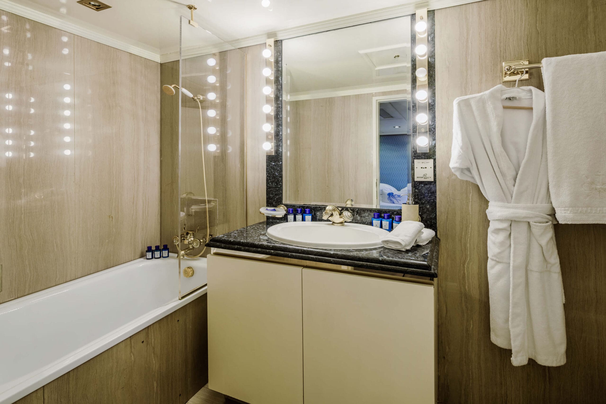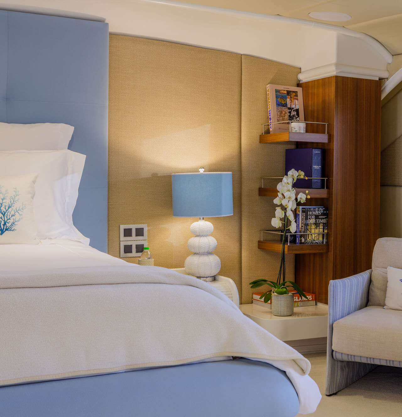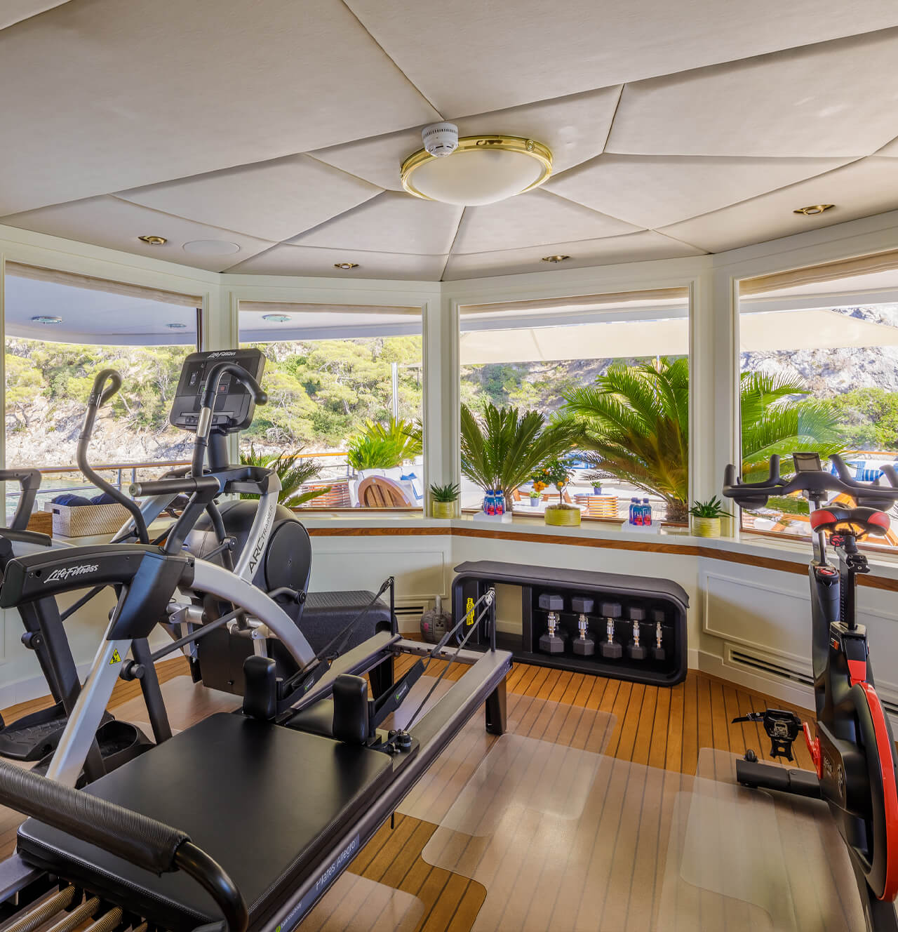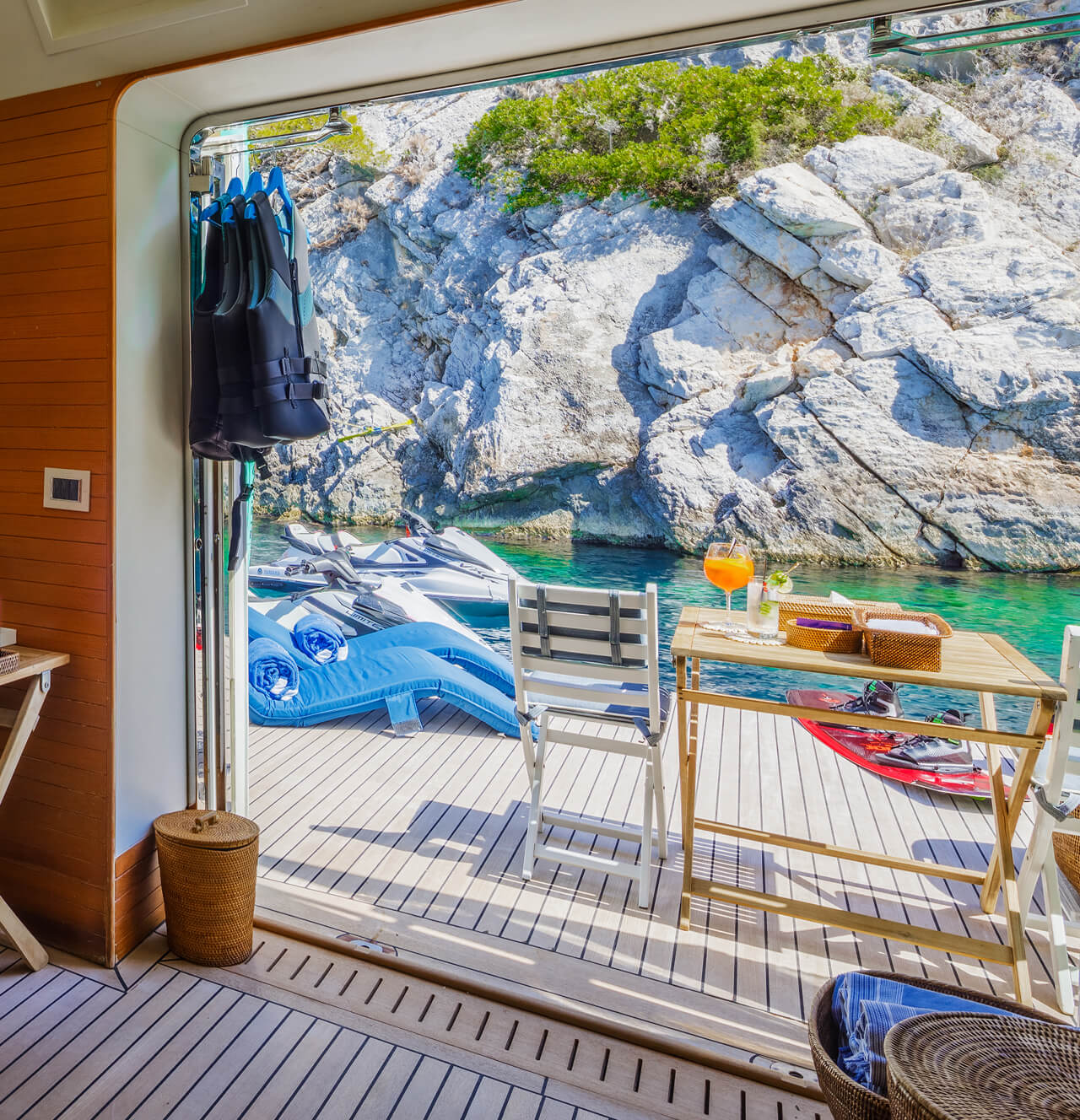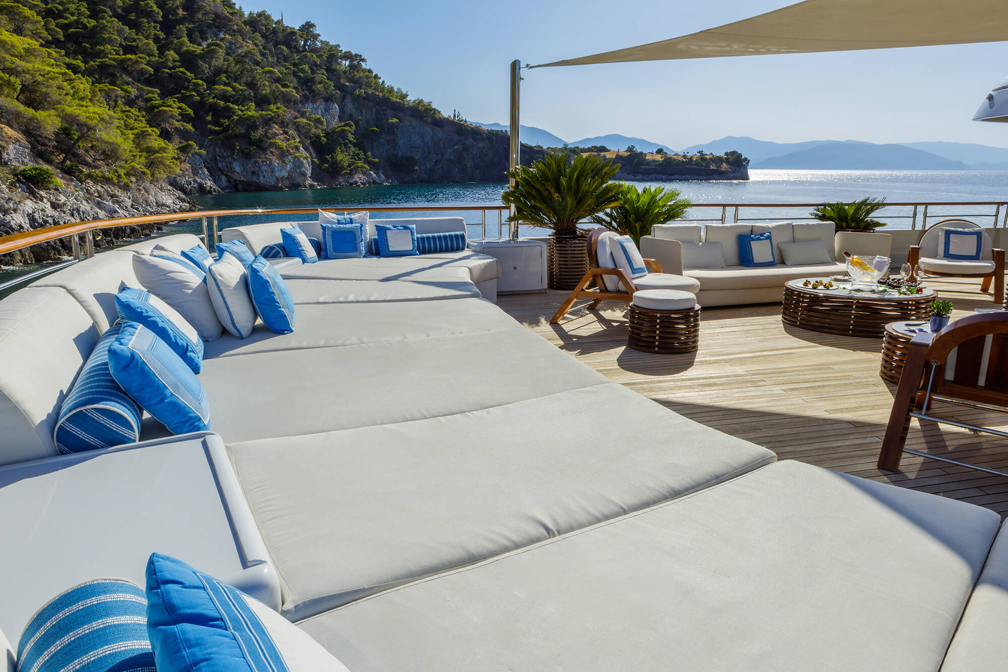 CONFIGURATION: Main Deck: A Master Suite with a super king size bed with a Wardrobe cabin and ensuite facilities (bathtub/jacuzzi & shower) A Vip Cabin with a queen size bed. Lower Deck: Four Double cabins - two of them with king size bed. and the other two with queen size bed. Two Twin guest cabins All cabins with ensuite facilities