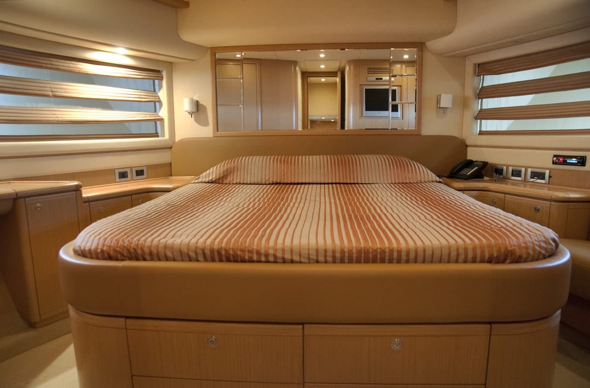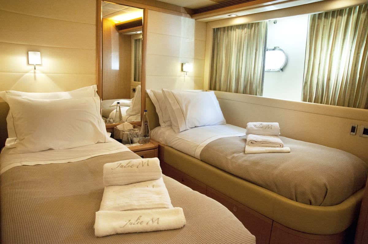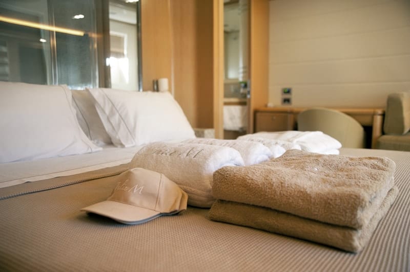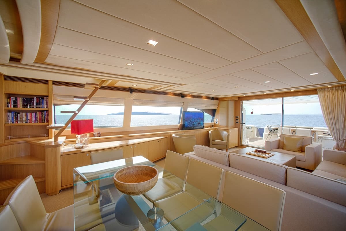 JULIE M is an exceptional yacht – filled with light throughout, contemporary interior design using light oak wood and leather, lots of sea toys and impeccable service, this Ferretti 830 offers an incredible charter experience in Greece. Her spectacular Master stateroom windows make living below-decks a whole new experience. The King sized beds give your private quarters views of the sea you will not forget. She has a pool-tub on the fly deck and for the rest of the fun there is the “beach platform”. That is a teak-laid area opening at the push of a button to form a sumptuous, sea-level deck where it all happens. Embark on water sports, sun-bathe, fish and sip cocktails all here on this one platform. Ferretti’s signature stabilizers make sure there is no rock and rolling cruising at…