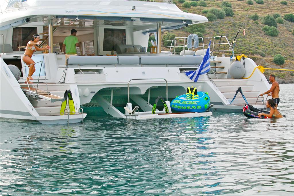 Smooth sailing and spacious accommodation are found aboard NOVA, a beautiful LAGOON 620 catamaran. She accommodates her eight guest in four staterooms with private baths en suite. Her saloon has full panoramic windows surrounding the entire room which allows for the Grecian sun to flood the room with bright light and airy breezes. The saloon opens to the aft deck making the aft deck an extension of the main living-room. The aft deck has a dining table for al fresco dining should one wish otherwise guests can enjoy sumptuous meals at the large table in the saloon. The aft pontoons are a great place to sit and play and offers it’s guests easy access to the sea. The fore of the yacht has a fabulous netted area for sun bathing and admiring the star filled…